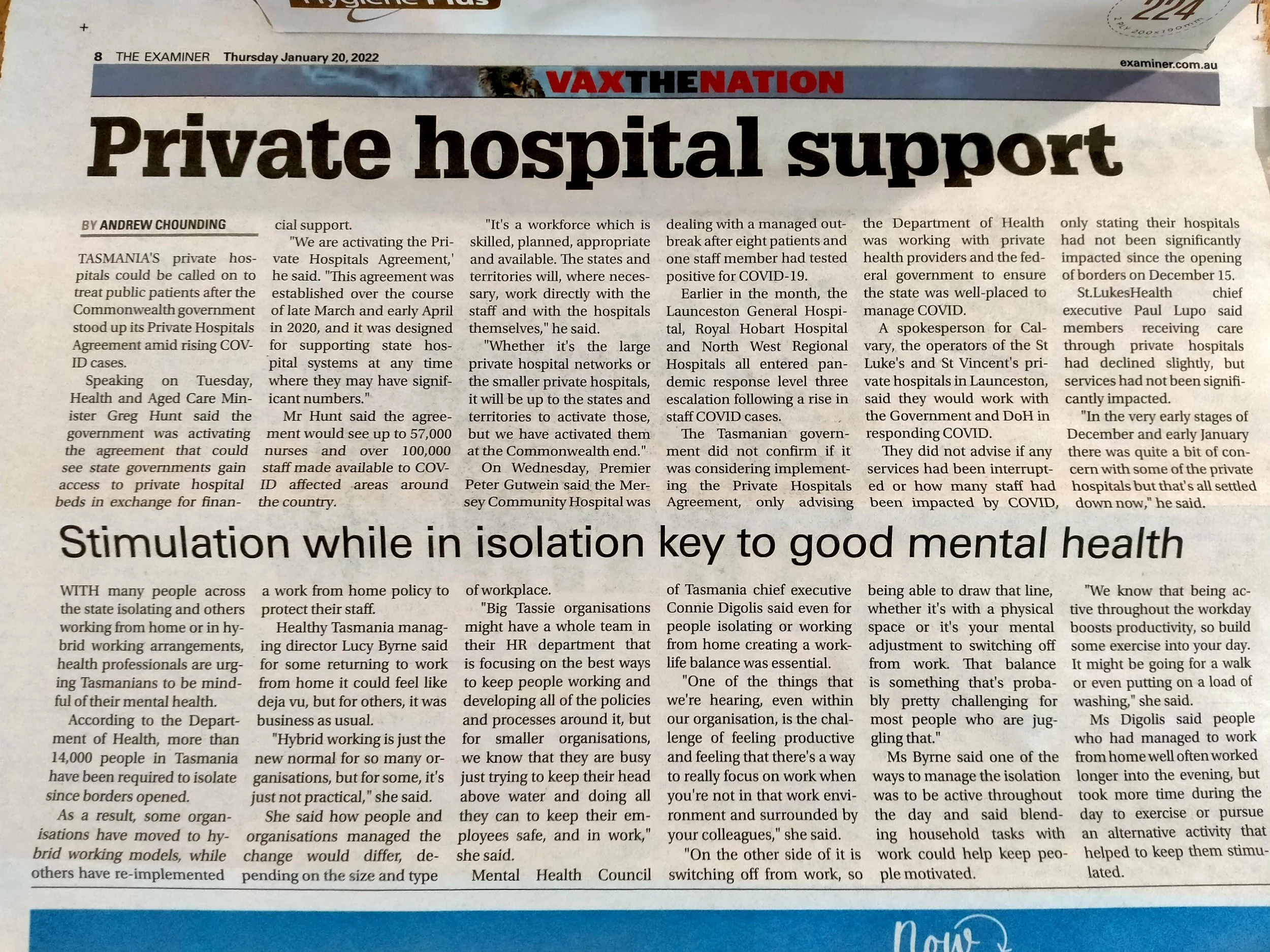 With many people across the state isolating and others working from home or in hybrid working arrangements, health professionals are urging Tasmanians to be mindful of their mental health.